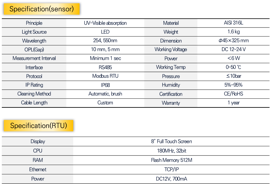 Compared to analytical devices, Online Spectrophotometer can measure without using reagents, so the generation of additional contaminants is low. The LED light source can be used for a long time, reducing maintenance costs, and automatic cleaning brush operation extends the sensor maintenance cycle and enables long-term online monitoring.